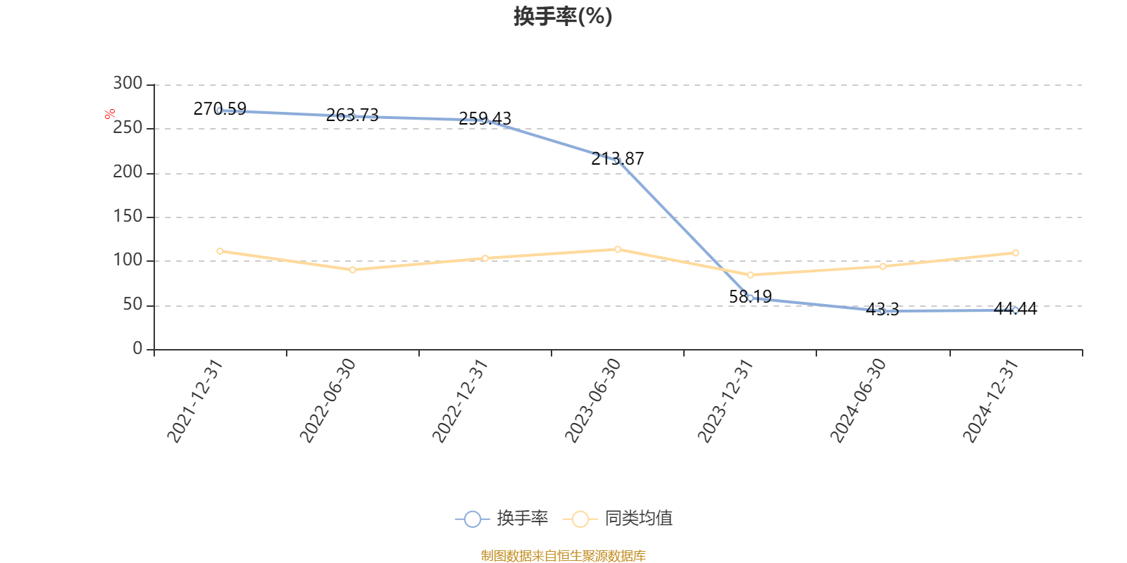 截至2024年12月31日,基金最近一年换手率约87.04%,持续1年低于同类均值。