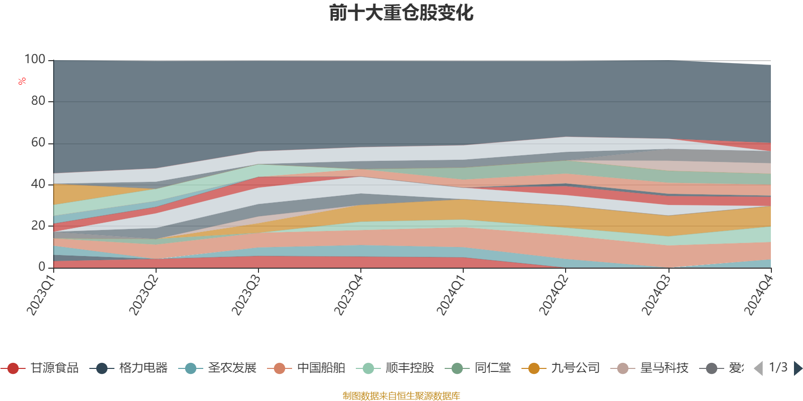 截至2024年末,基金重仓股分别是九号公司、中国船舶、顺丰控股、药明康德、珠海冠宇、华能国际、中国动力、甘李药业、中国移动、圣农发展、华能国际电力股份。